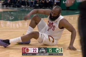 GIF-哈登三分后倒地