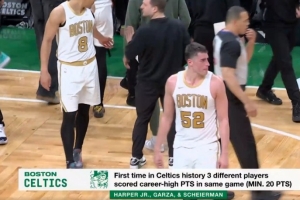 据统计,这是绿军队史首次同场有3位球员各自砍下生涯得分新高。