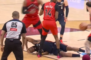 GIF-哈登被打到头部倒地